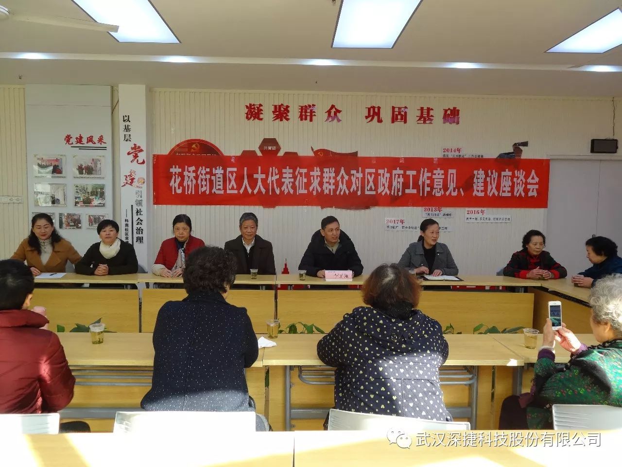 在江岸区第十五届人民代表大会第二次会议来临之际,李国强董事长作为花桥街道辖区的区人大代表,深入科苑社区,与居民群众面对面交流,宣讲党的十九大精神,并承诺将严格执行十九大报告中关于坚持和完善人民代表大会制度、推进新时代人大工作提出的新部署、新要求,密切联系群众,反映人民意愿,真正担负起人大代表的职责;同时征求居民群众对政府明年办十件实事的期盼,以及对政府工作的意见和建议。